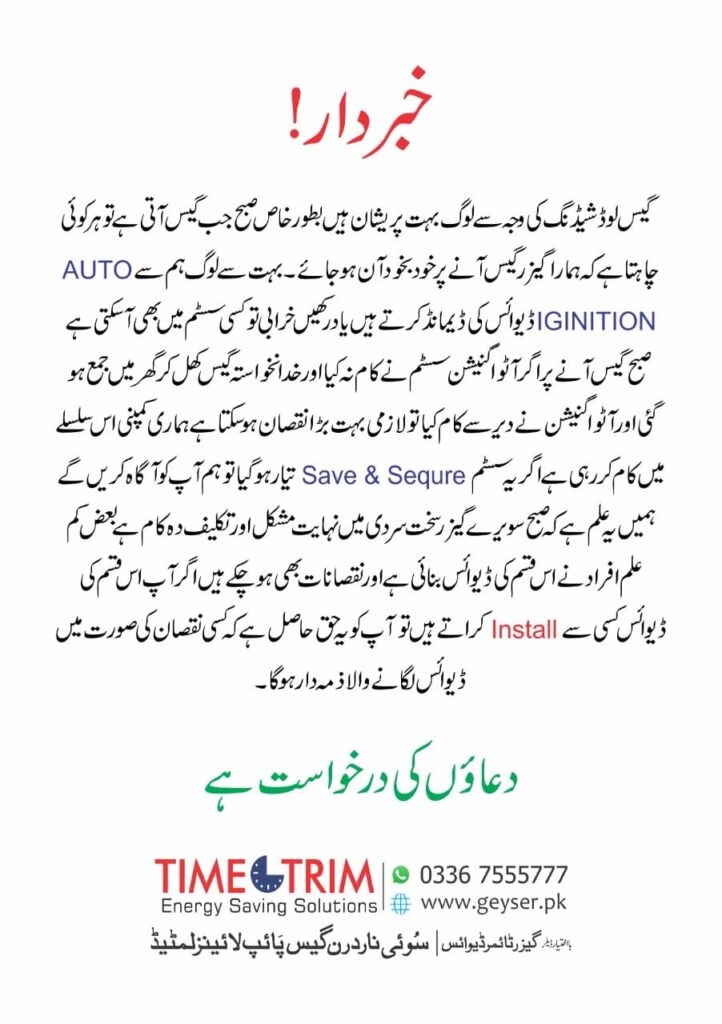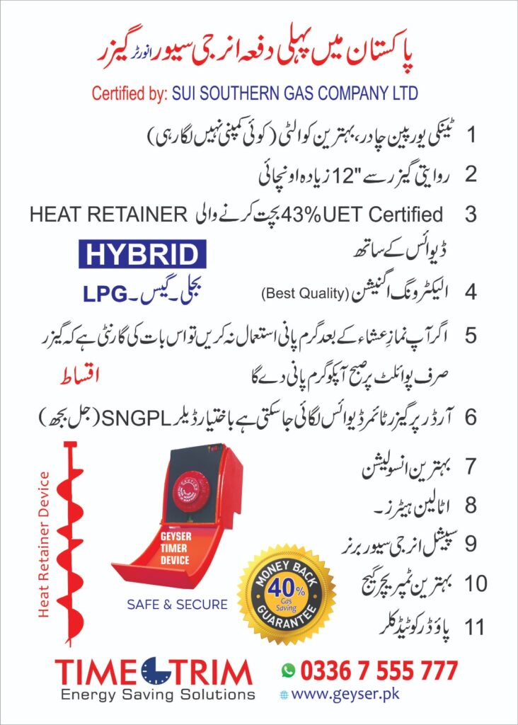 Smart Energy Solutions for Modern Living,Gas Inverter Geyser,Wood Pellet Geyser,SNGPL-Certified Geyser Timer Device,UET-LAB Certified Heat Retainer Device,,Wood Pallets Available at Factory Price,Geyser Electronics Ignition System,Gas-Leakage Safety System,